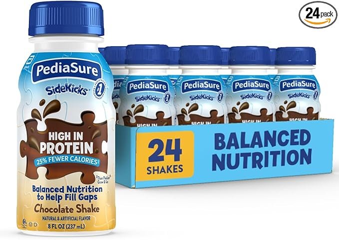PediaSure SideKicks, Kids Protein Shake, With Key Nutrients and Protein to Help Kids Catch Up on Growth and Fill Nutrient Gaps, Chocolate, 8-fl-oz Bottle, Pack of 24