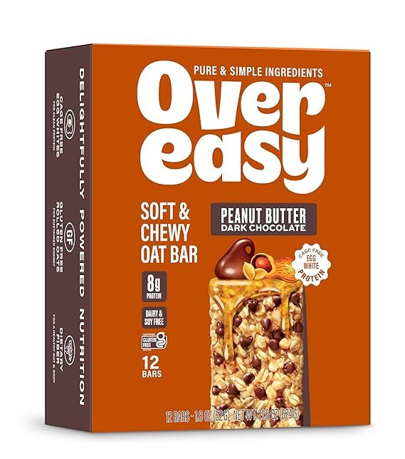 Over Easy Peanut Butter Dark Chocolate Soft and Chewy Oatmeal Breakfast Bars – Granola and Protein Bars – 12 Energy Snack Bars – Clean, Gluten Free, Dairy Free, Soy Free and Kosher